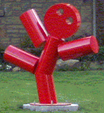 use the Gallery link. Fat Happy, Jr. is just under 60 inches tall and weighs about 200 pounds, and today, he stands watch in our front yard. By clicking on the links below, you will be able see how we secured Fat Happy (my engineer friends who designed the base have warned Julie and I that if a tornado ever hits, we should get out of the house and tie ourselves to Fat Happy, because he is not going anywhere!). There are photos of the "installation," of his first "birthday party," and of the subsequent humiliations he has suffered at Julie's hands (yes, despite my protests, Julie treats Fat Happy like one of those cement geese, dressing him up for holidays and special occasions). We hope you enjoy him as much as we--and our neighbors--do. |