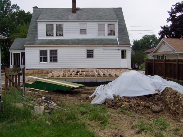 June 20: The subfloor is installed in the new first floor area. |