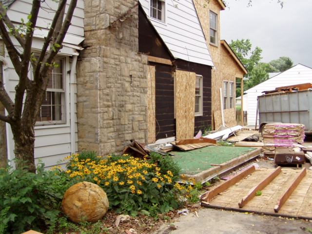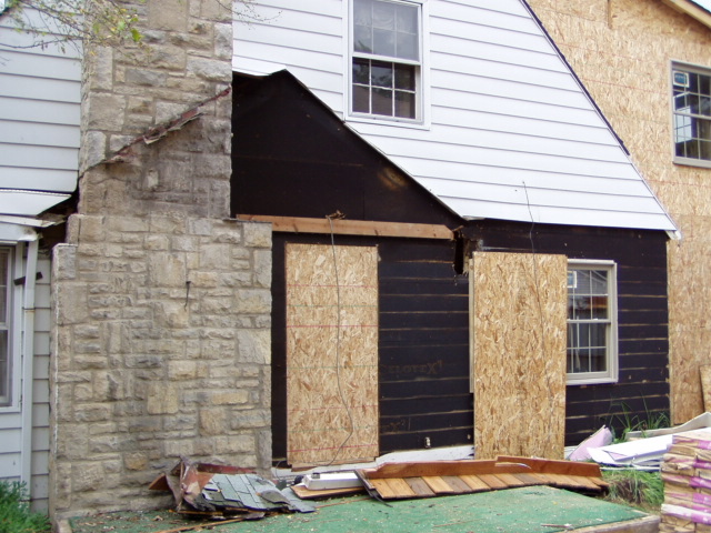 They've finally started to tear down that side porch... |