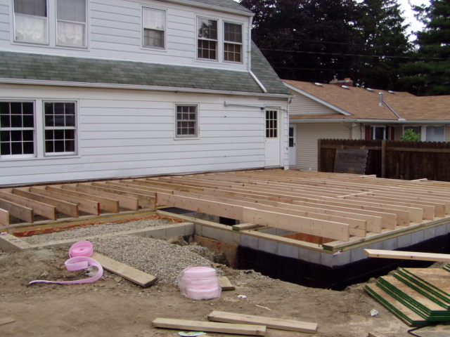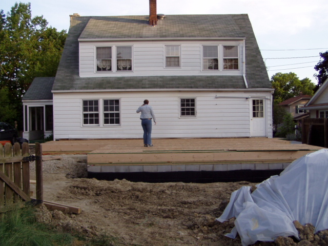 June 20: The subfloor is installed in the new first floor area. |