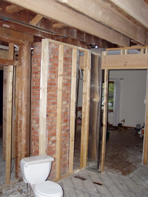 August 11: More ductwork; exposed brick in the kitchen. |
